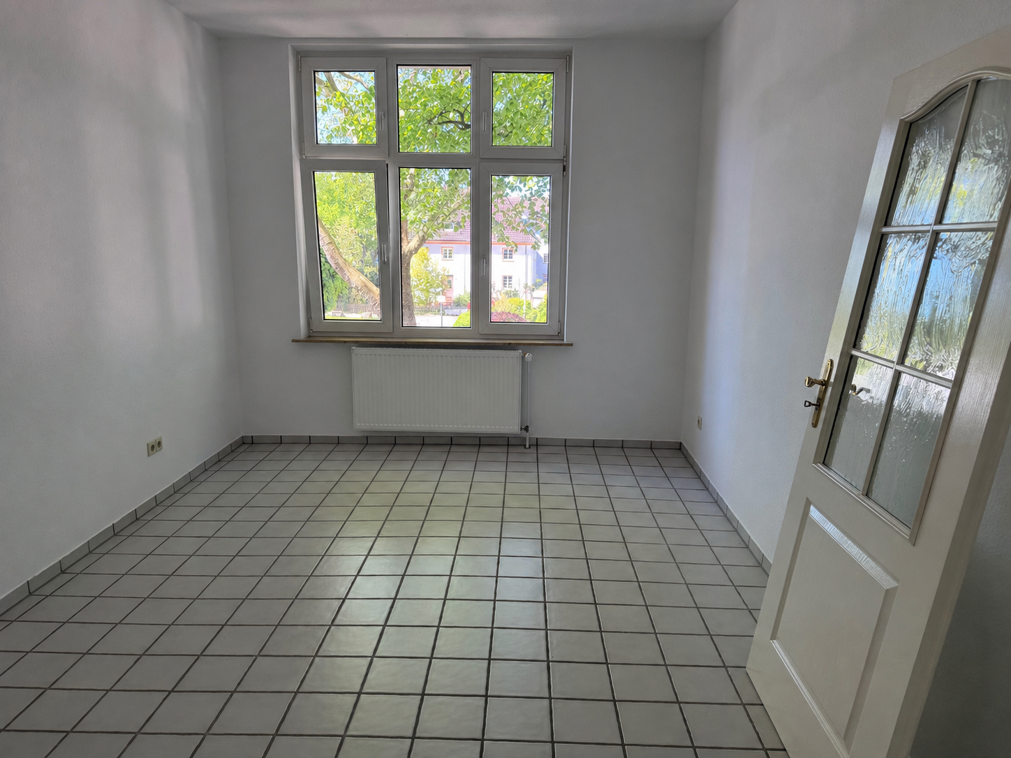 Die ruhig gelegene Wohnung befindet sich im 1. Obergeschoss des Hauses und verfügt über einen kleinen Wintergarten in der Küche.